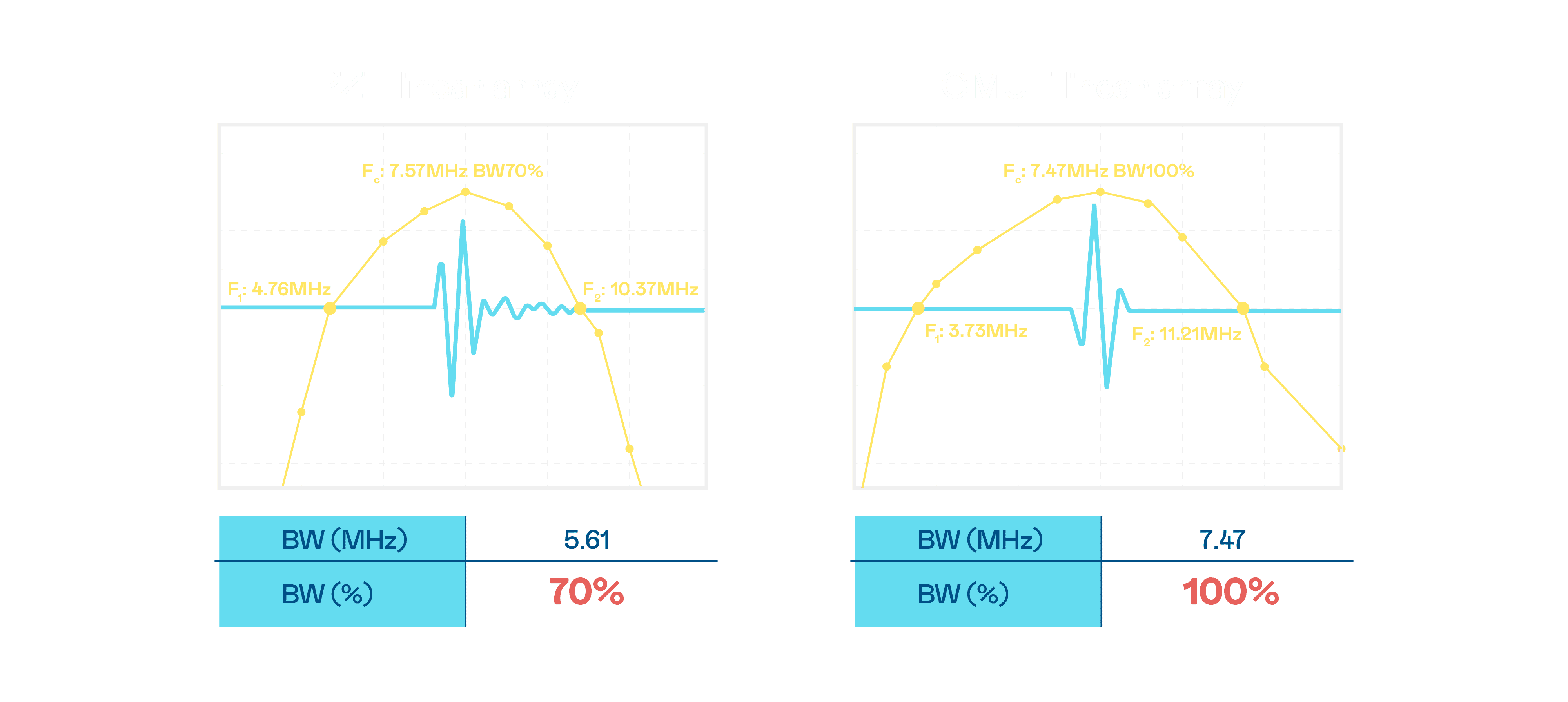 CMUT 技术是一种用电容式微机电元件来产生超音波讯号的技术。。。。与传统 PZT 压电式技术相比,,CMUT 频宽增加 30%,,,更宽频的超音波讯号让影像解析度大幅提升,,,是实现高影像品质医疗超音波扫描、、、、促进精准医疗发展的关键技术。。